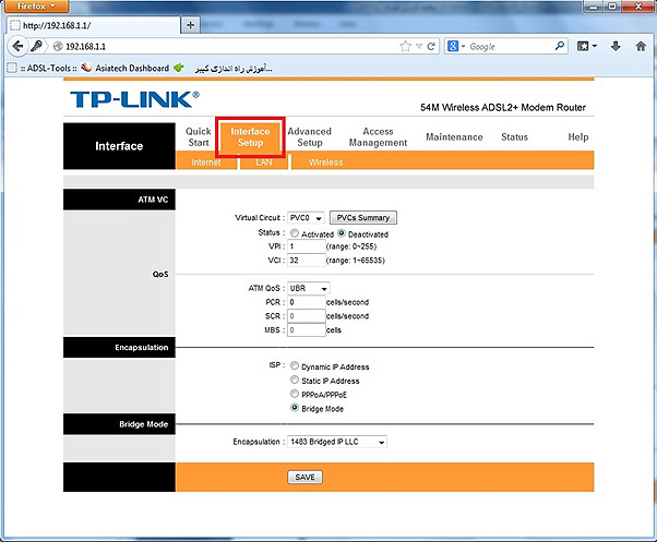 در نهایت برای ذخیره اطلاعات مودم برروی کلید Save کلیک فرمائید،
